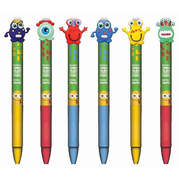 A mókás szemekkel, vicces szörnyekkel dekorált tollak segítségével a füzeted tiszta és hibátlan lehet, hiszen ha elrontottál valamit máris kiradírozhatod.
