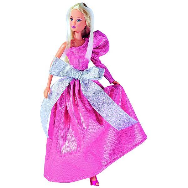 Steffi Love minden bálban, party-n gyönyörű lesz ebben a rózsaszín, csillogó masnis, estélyi ruhában. A csillámos ezüst masni még inkább elegánssá teszi a szettjét. A gyönyörű fényes ruha még egy herceget is levenne a lábáról.