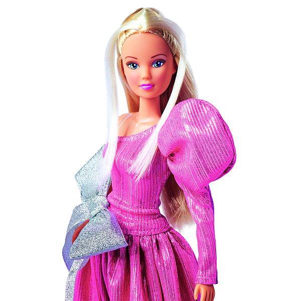 A 29 cm magas Steffi baba végtagjai mozgathatóak és hajlíthatóak, haja fésülhető. A baba ruhája és kiegészítői levehetők.