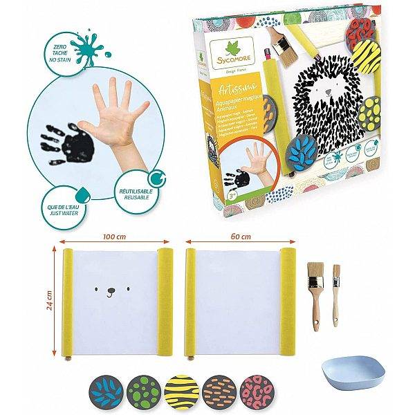 Fess maszatmentesen! Készíts egyedi képeket állatokról ezzel a különleges kreatív játékszettel. A használati útmutató lépésről lépésre vezet be az aquapapír használatába, hogy megismerkedj egy újfajta technikával is. A vízzel festés a kicsik számára is praktikus, maszatmentes. A Sycomore minőségi termékei segítenek a gyerekeknek, hogy kreativitásukat többféle módon kiélhessék és fantáziájuk életre keljen.
