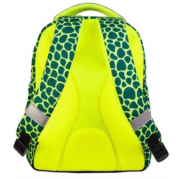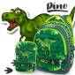 Szuper könnyű ergonomikus iskolatáska fiúknak, menő világoszöld színekben, dínós mintával. Az elején egy T-Rex látható.