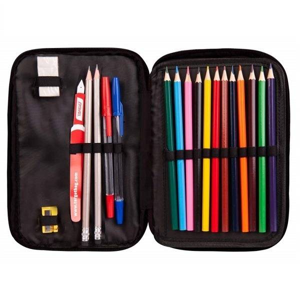 – Gumipánttal összesen 30 db ceruza rögzíthető benne