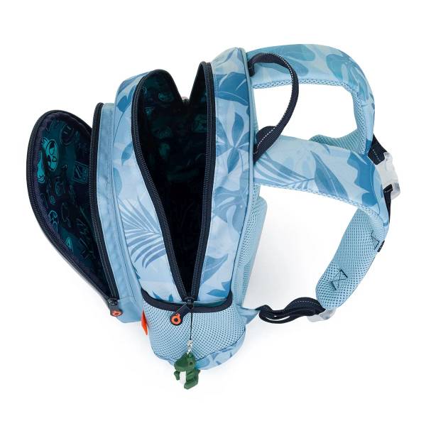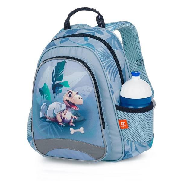 Ez a vagány dinoszauruszos kis méretű hátizsák tökéletes társ az alsós kalandorok mindennapjaiban. A táska egy nagyobb és egy kisebb rekesszel, valamint kétoldali hálós zsebbel segíti a rendszerezett pakolást, így minden fontos holmi könnyen elfér benne. A párnázott vállpántok, a bélelt hátlap és a mellpánt kényelmes, biztonságos viseletet biztosítanak, míg a fényvisszaverő elemek növelik a láthatóságot és a biztonságot.