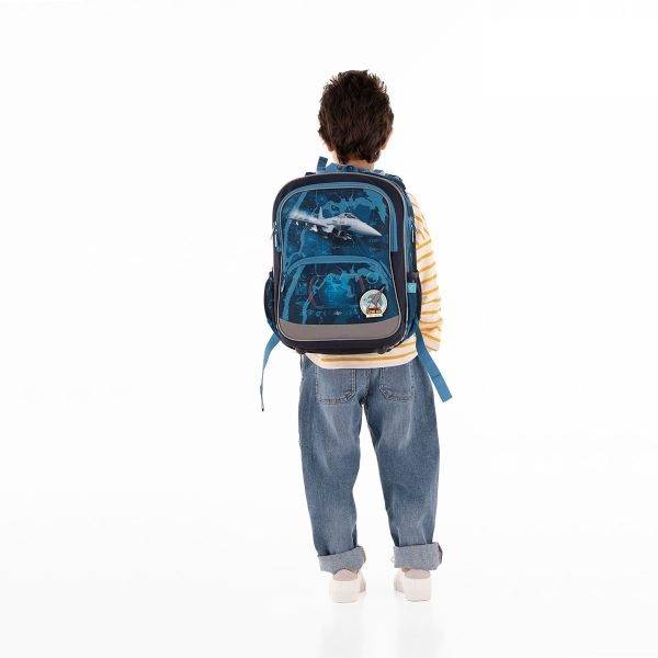 Vadászrepülő mintájú ez a járműves, kékes színvilágú TOPGAL ergonomikus iskolatáska hátizsák BAZI - Flying Ace. Első osztályos kortól ajánlott. Az ergonomikus kialakítású, szivacsos hátrész védi a gerincet, egyúttal kényelmessé teszi a táska használatát.