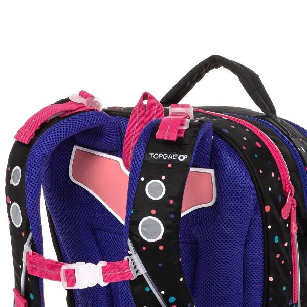 Hímzett pillangó minta, kék, rózsaszín színvilág teszi lányossá ezt a minőségi TOPGAL ergonomikus iskolatáska hátizsákot. Az ergonomikus hátizsák lányoknak. Praktikus elrendezésű, kényelmes, párnázott merevített hátlapja kíméli a gyerekek gerincét.