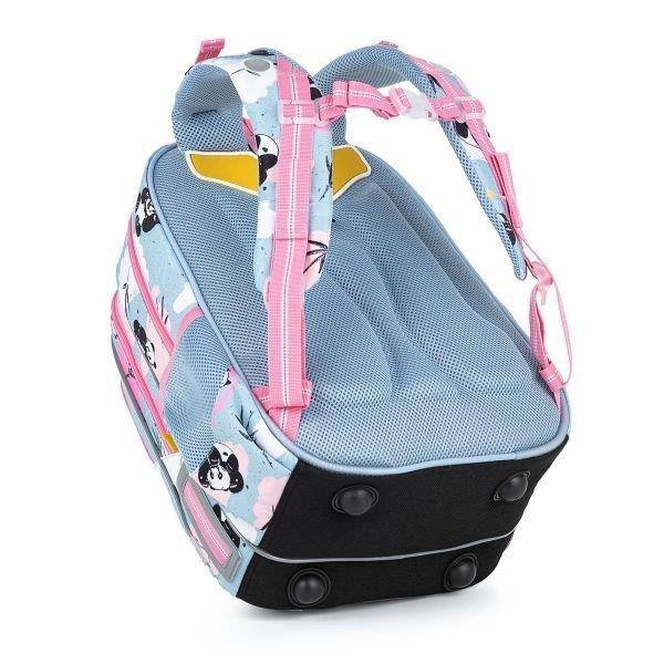 Minőségi iskolatáska alsósoknak a kislányok számára kedves, cuki pandás mintával. Az ergonomikus hátizsák lányoknak ajánlott, világoskék színe, pandamacis mintázata kifejezetten egyedi és figyelemfelkeltő. Tágas rekeszei jól pakolhatók, mérete miatt 2-4. osztályosoknak ideális. Könnyű kivitelezés, többszörösen állítható pántok gondoskodnak róla, hogy a kisebb termetű lányok számára is kényelmes legyen.