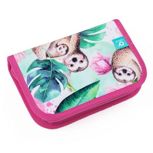 Levelek és virágok között lustálkodik ez a cuki lajhár ezen a pink szegélyes TOPGAL kihajtható tolltartón.