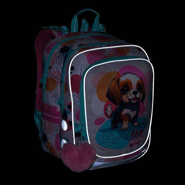 Cuki kutyus és buborékos díszítés teszi divatossá ezt a TOPGAL kutyás ergonomikus iskolatáska hátizsákot. Első osztályos kortól ajánlott. Az ergonomikus kialakítású, szivacsos hátrész védi a gerincet, egyúttal kényelmessé teszi a táska használatát.