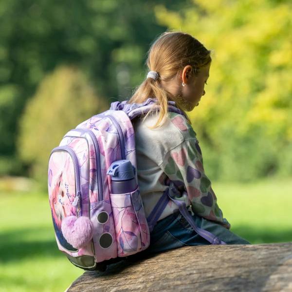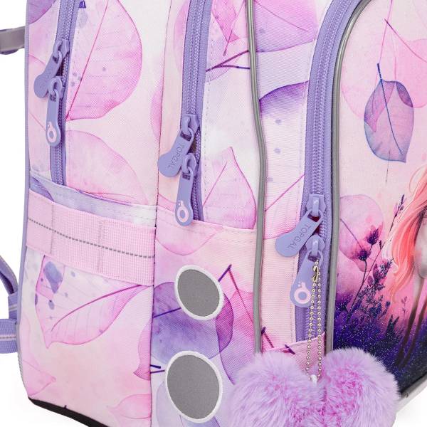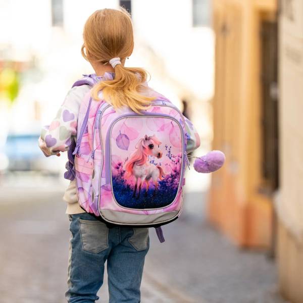 A Topgal pasztell lila lovas iskolatáska tökéletes választás kisiskolás, különösen elsős kislányok számára. Ergonomikus kialakításának és könnyített vázának köszönhetően kényelmes viseletet biztosít, miközben megfelelően támasztja és védi a gyermek hátát. A táskát díszítő bájos ló motívum és a lágy pasztell színek harmonikus, vidám megjelenést kölcsönöznek, így az iskolakezdés igazi élménnyé válik.