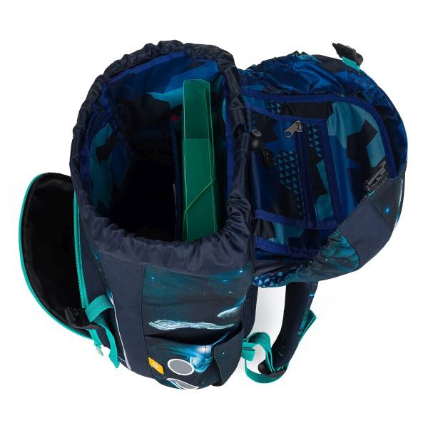 Világűr mintás, bolygós, űrhajós ez a kék színvilágú Topgal merevfalú iskolatáska csatos KIRA - Space Traveler. A könnyen kezelhető mágneses csattjának köszönhetően praktikus kivitelezésű merevfalú iskolatáska.