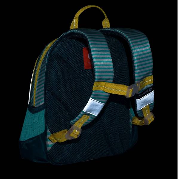 A kis hátizsákba egy nagyobb és egy kisebb rekesz segíti a kényelmes pakolást, kétoldalt hálós zsebbel. Vállpántja párnázott. Mellpánt csatolható. Hátlapja bélelt a kényelmesebb viseletért. Fényvisszaverő elemek gondoskodnak a biztonságról.