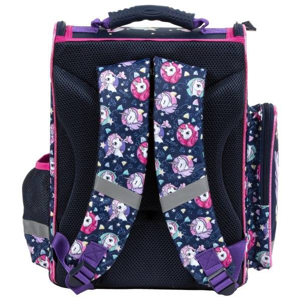 Az unikornisos BackUp iskolatáska szett tartalmazza az ergonomikus iskolatáskát, a kihajtható tolltartót és a tornazsákot. A divatos, látványos unikornis mintázat minden elsős kislány szívét elrabolja. A dobozos kialakításnak és a praktikus belső elrendezésnek köszönhetően könnyen pakolható, az ergonomikus, párnázott hátkiképzés pedig segíti a helyes testtartást és védi a gerincet – így nemcsak gyönyörű, hanem kényelmes is.
