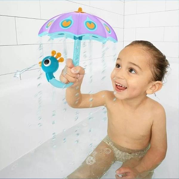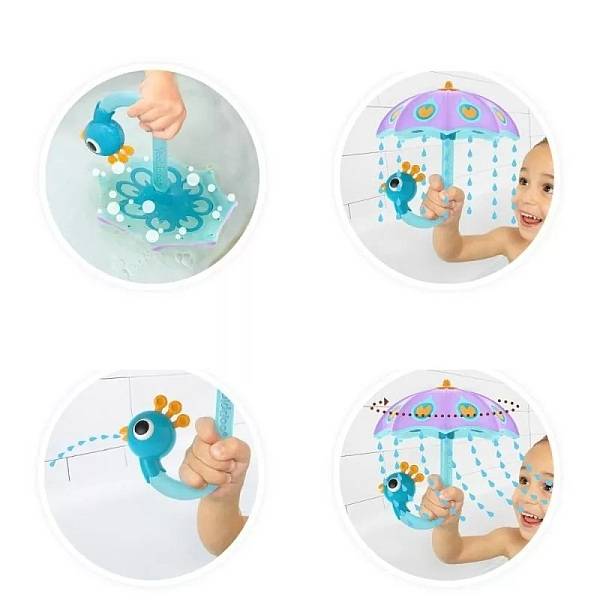 Játszunk egyet a fürdésnél! Minden babát és kisgyereket játékra hív a Yookidoo lila páva esernyő, ami vidám szórakozássá varázsolja az esti fürdés idejét. Az esernyő formájú játék egy páva tollaival mintázott. Ha vízbe mártják a páva száján spriccel a víz, az esernyőről pedig szintén víz csordogál, miközben forogni kezd. Játékos babazuhany, ami segíti a fröccsenő vízzel való megbarátkozást. A Yookidoo fürdőkád játéka BPA-mentes, bármilyen tiszta vízzel használható kádban, úszómedencében és gyerekmedencében.